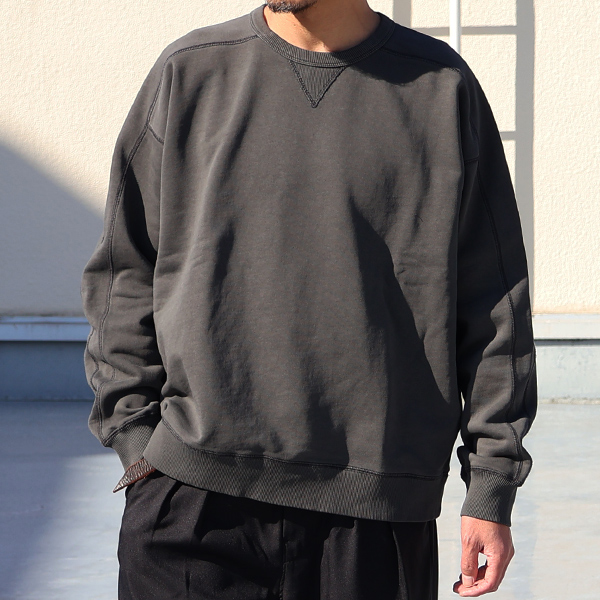 ピグメントヘビー裏起毛(14オンス)ミリタリースリーブ ガゼットクルーネック / Audience