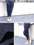 ストライプ柄でスタンダードなデニムより軽快な印象を与えることもできます。