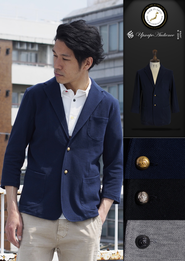 リサイカラー鹿の子7分袖ブレザー【MADE IN JAPAN】『日本製』【送料無料】/ Upscape Audience [AUD2390]