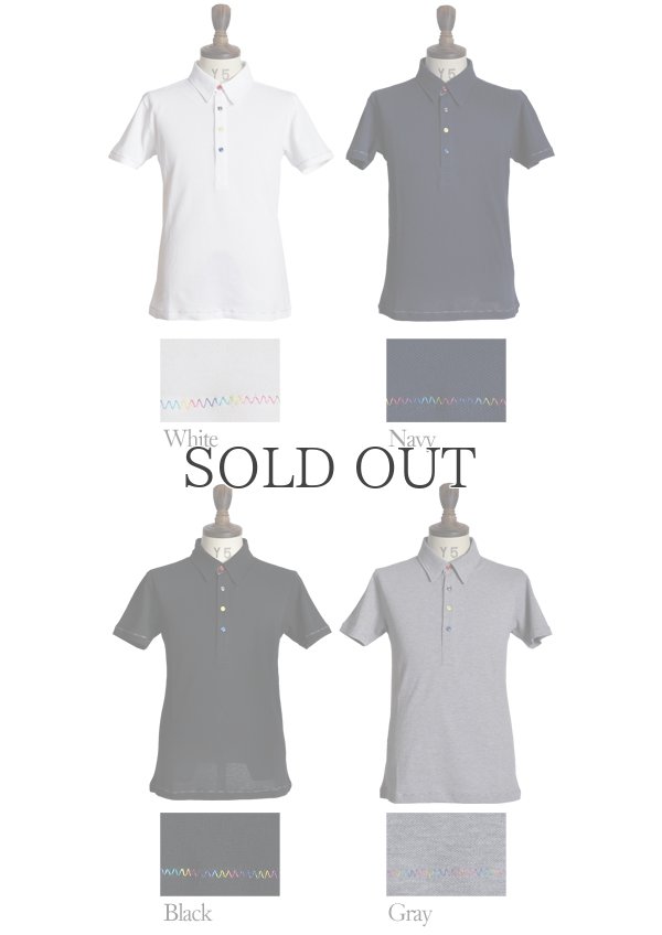 リサイカラー鹿の子ランダムボタンレインボーステッチ半袖ポロシャツ【MADE IN JAPAN】 / Upscape Audience [AUD1428]