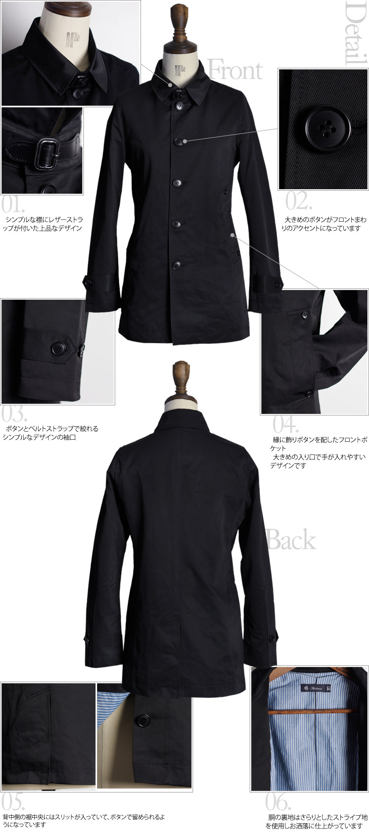 うねのあるツイル素材でありながら、艶のある高級感を併せ持つ"綾P/N"素材の魅力を最大限に活かす、シンプルなデザインのステンカラーコート。