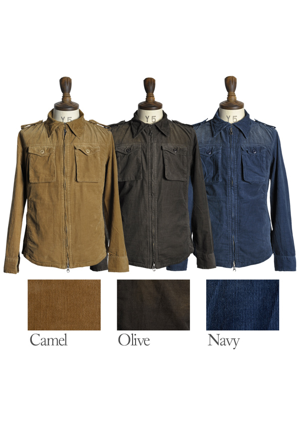 エポレットやマチ付きの胸ポケットなど要所を抑えつつシンプルなミリタリーデザイン。コーデュロイ独特の"うね"のある素材感が大きな魅力。