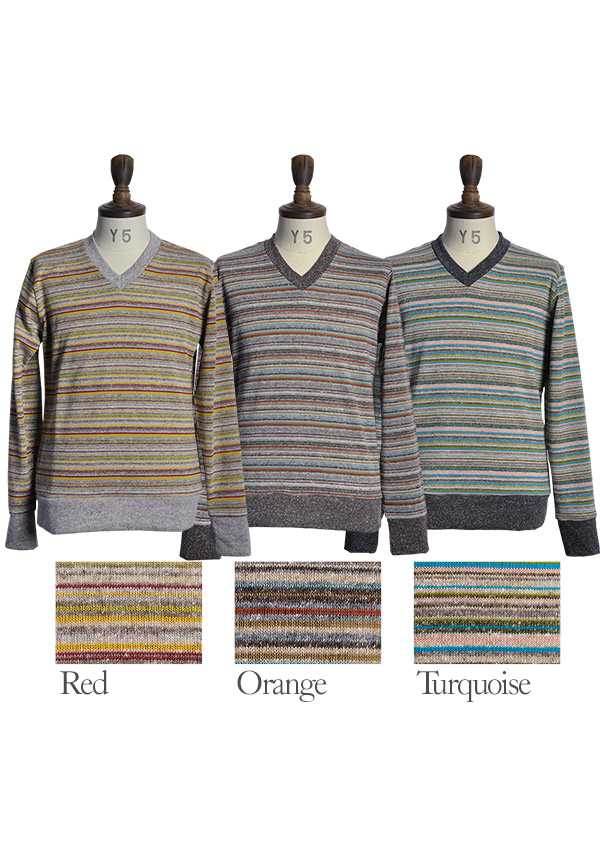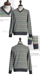 シエスタマルチボーダーVネック長袖ニット / Upscape Audience [AUD1459]