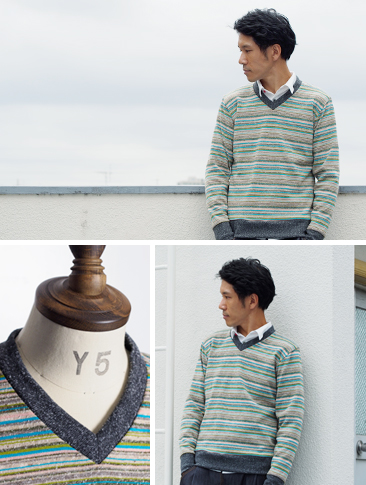 シエスタマルチボーダーVネック長袖ニット / Upscape Audience