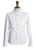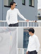 フロントのカラフルなランダムボタンと襟下、腰の両サイドに施されたレインボーステッチが魅力的なスタンダードシャツ。