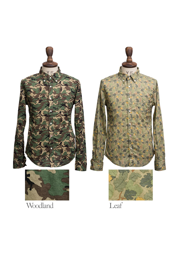 2種類のカモ柄を選べる、さらりとしたバンダナのような生地感を持つ長袖シャツ。