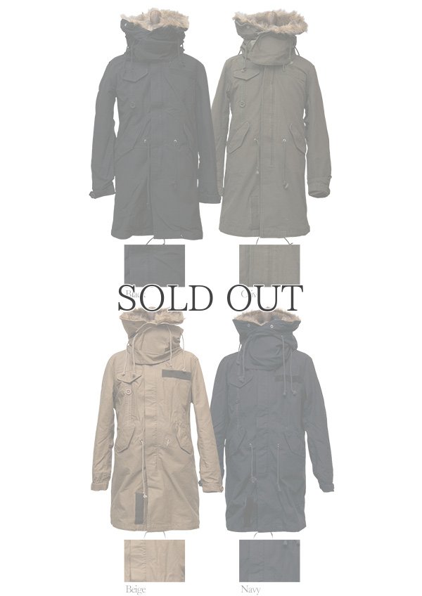 | MATERIAL | (表地)コットン100% (ライナー)ポリエステル100% (中綿)ポリエステル100% (フード裏)ポリエステル95% ウール5% (ファー部分)ポリエステル100% |