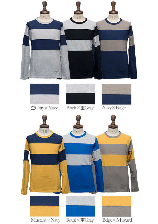 ラフィー天竺太ピッチボーダークルーネックラグラン長袖カットソー / Upscape Audience [AUD1549]