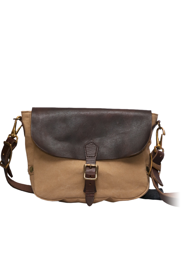 厚手のキャンバス地とレザーを組み合わせた高級感溢れるミニショルダーバッグ。ハンドメイド&国産の確かな品質とシンプルなスタイルが魅力です。