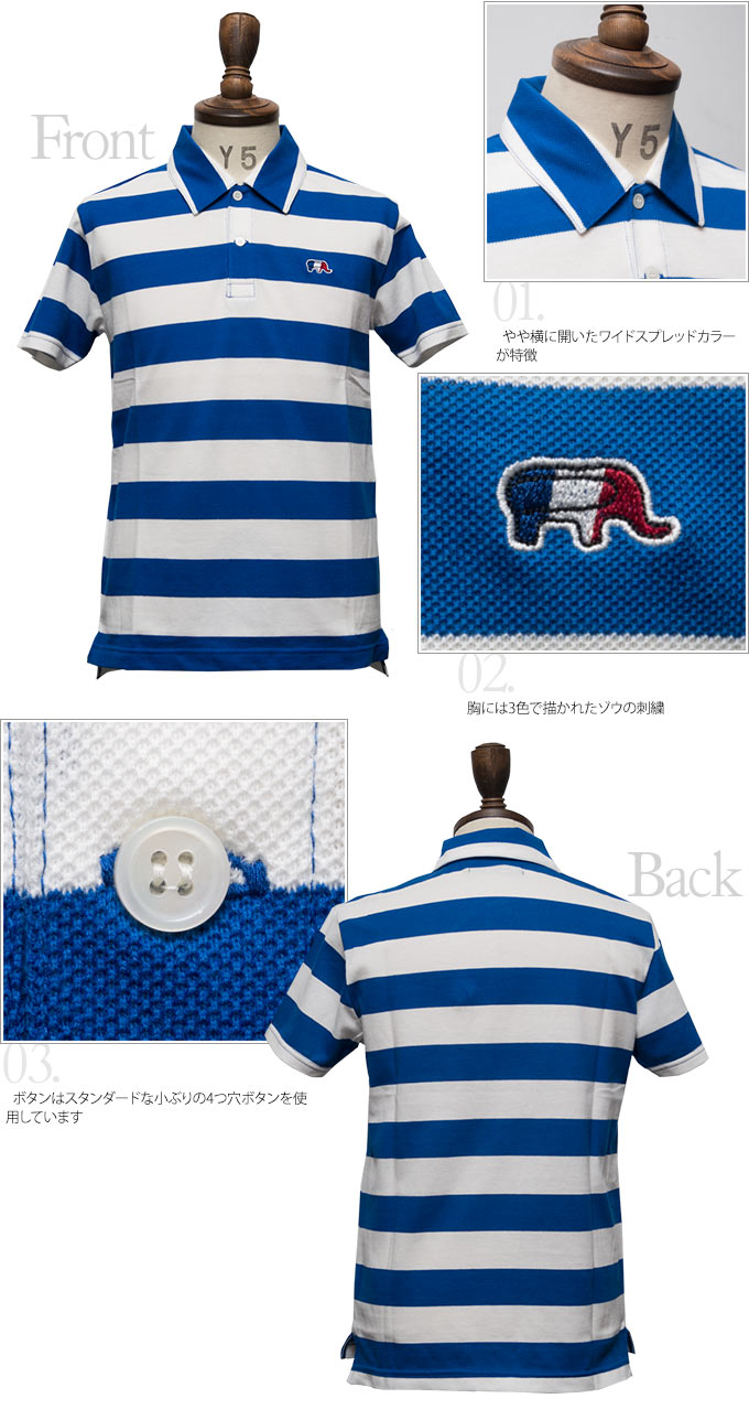 【RE PRICE / 価格改定】鹿の子太ボーダーエレファント刺繍ワイドスプレッドカラーポロシャツ【MADE IN JAPAN】『日本製』/ Upscape Audience [AUD1554]