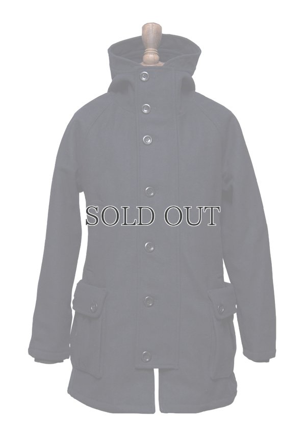 高いスタンドカラーに連なるフードを長い丈と組み合わせカジュアルなスタイルに仕上げたアウター。