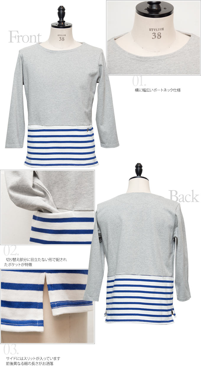 BSQボーダーボートネックパネルポケ付7分袖カットソー【MADE IN JAPAN】『日本製』/ Upscape Audience