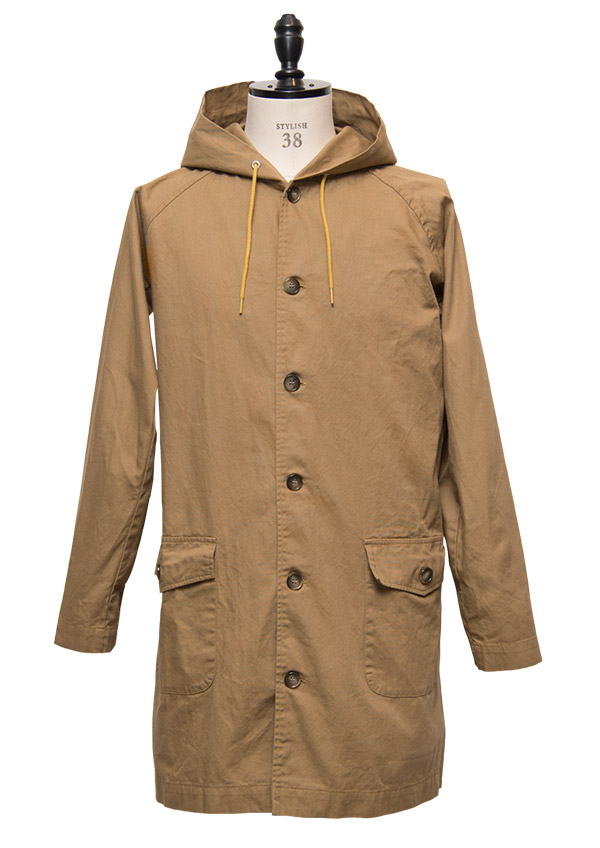 さらりとしたタフな手触りが特徴的なオックスフォード地をフード付きの長丈シャツコートに仕上げました。