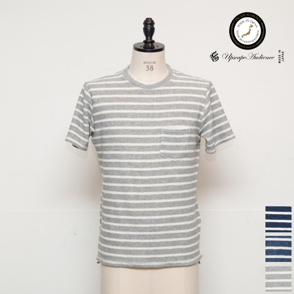 イズミールコットンパイルボーダークルーネックポケ付半袖スウェット【MADE IN JAPAN】『日本製』/ Upscape Audience [AUD1669]