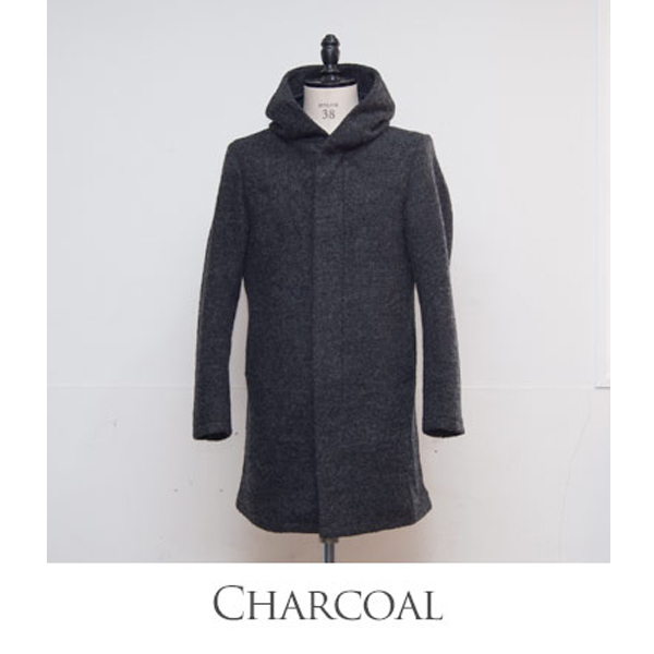 前身頃をジップで仕上げたシンプルなフードコート。ダッフルコートのディティールを採用しながらも、特徴であるトグルを排除したアイテム。