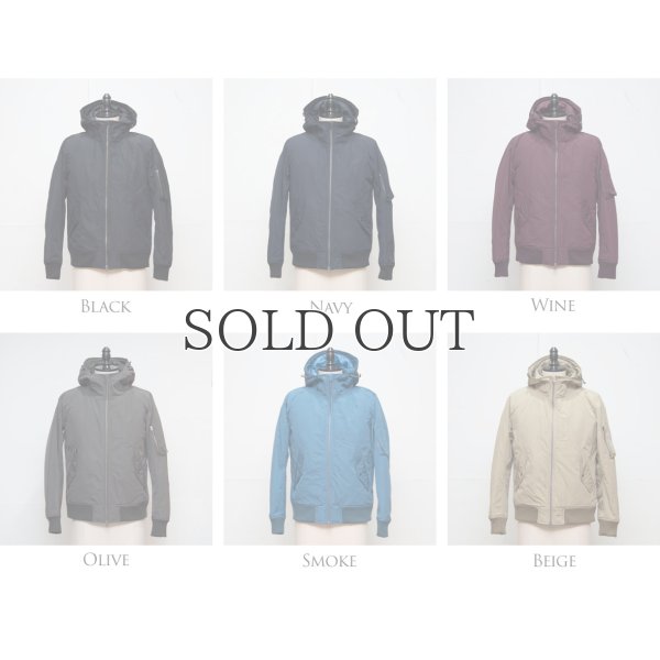 ミリタリー感の強いMA1ですが、アーム部分を細く、ボディのボリュームを程よく抑えたスマートな仕上がりのフード付きブルゾンです。