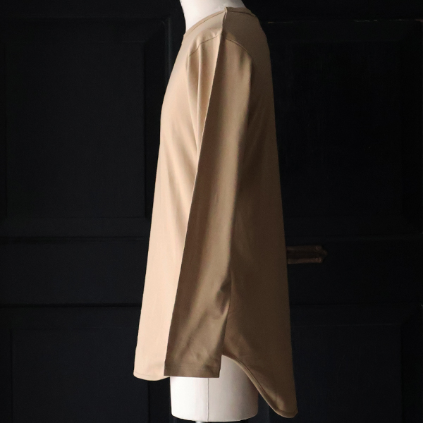 コットン特有のしなやかで柔らかいツヤ感の"コーマ天竺"素材は、デザインも相まって落ち着いた大人のスタイルを実現します。