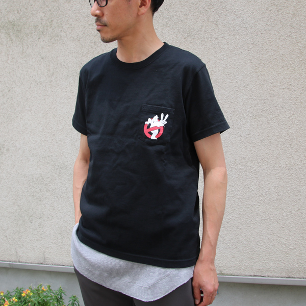 米綿を使用し、脇にも背中心にも縫い目のない丸胴仕様に編みあげたボディに、世界中で知られているあのゴーストバスターズのロゴをあしらった1枚。