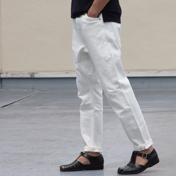 希少なセルヴィッチ(赤耳付き)ホワイトデニムを使用し、ロールアップ具合もワンランク上のルックスを実現します。