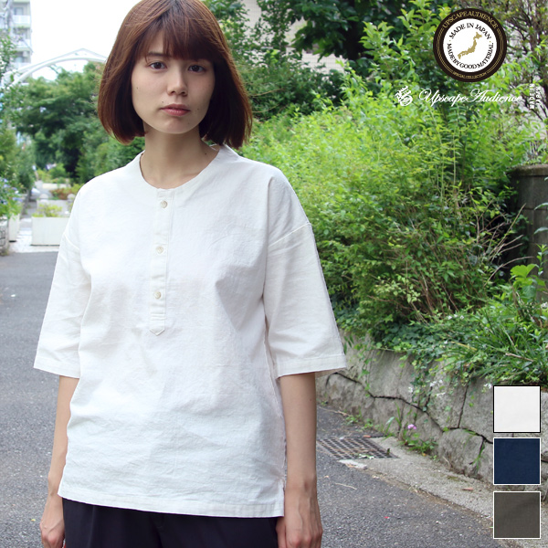 タイプライターVネックバンドカラー長袖_Shirts【MADE IN JAPAN】『日本製』/ Upscape Audience