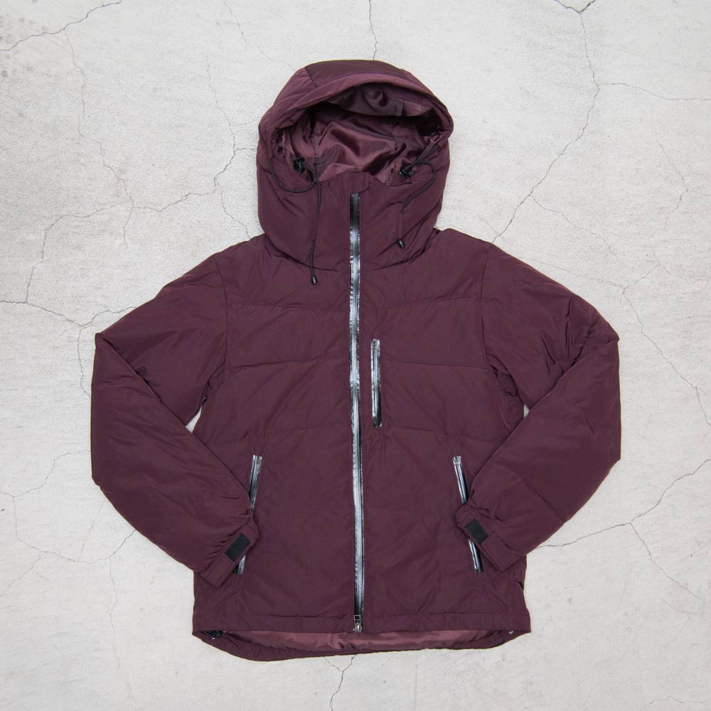この生地ならではの、独特のぬめり感にマットな色味を表現した”割繊糸”を使用したダウンジャケット。
