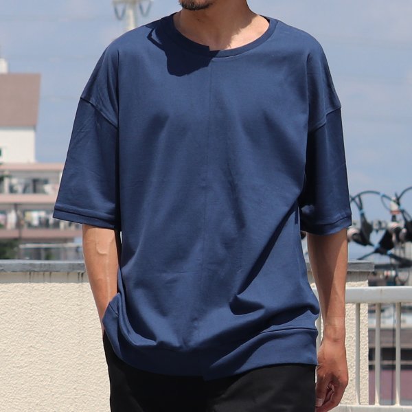 【RE PRICE/価格改定】コーマ天竺アシンメトリークルーネック半袖オーバーサイズスウェットTee【MADE IN JAPAN】『日本製』/ Upscape Audience [AUD1897]