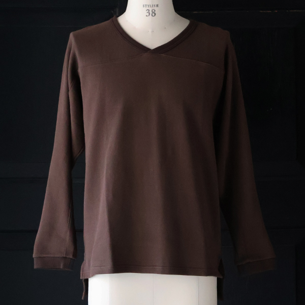 数あるスウェットの中からこちらのアイテムはVネックを採用しました。