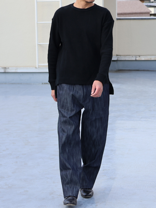 【RE PRICE / 価格改定】ビッグワッフル C/N ルーズフィット ロングニットソー【MADE IN JAPAN】『日本製』 / Upscape Audience [AUD1932]