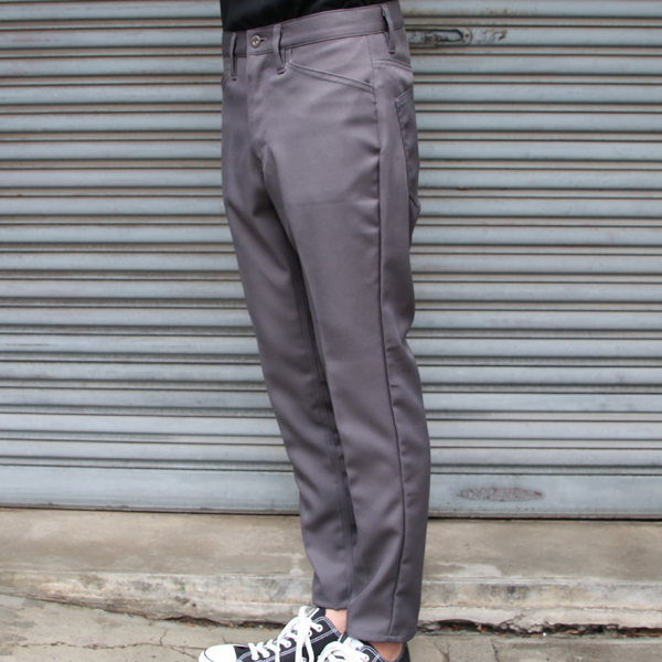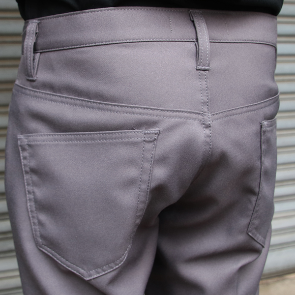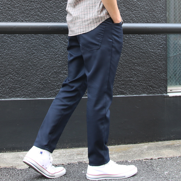 ハリのある綾織の生地は、シワにならず色落ちもほぼ無く、センタープレスも取れづらくなっており、ノーアイロンで着用できるスラックスです。