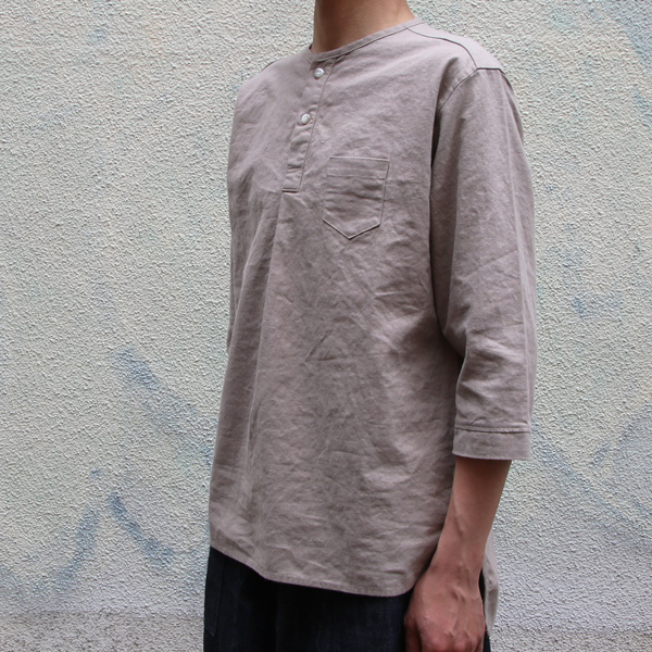 新しい新定番Upscape Audience Soft linen cotton canvas Henley 7/Sshirt