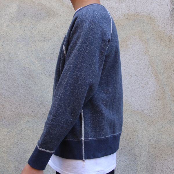 1960年代のUnion Special社製のヴィンテージミシンを使用し、脇から袖にかけては、縫い目が平坦なフラットシーマ(4本針扁平縫い)を採用しております。