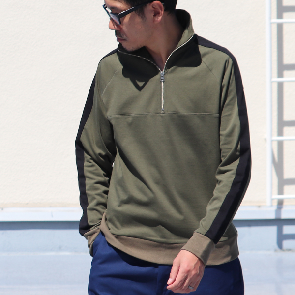 AudienceではハーフZIPを採用し、サイドライントップスにする事で、よりトレンド感のあるトラックジャケットに仕上がっております。