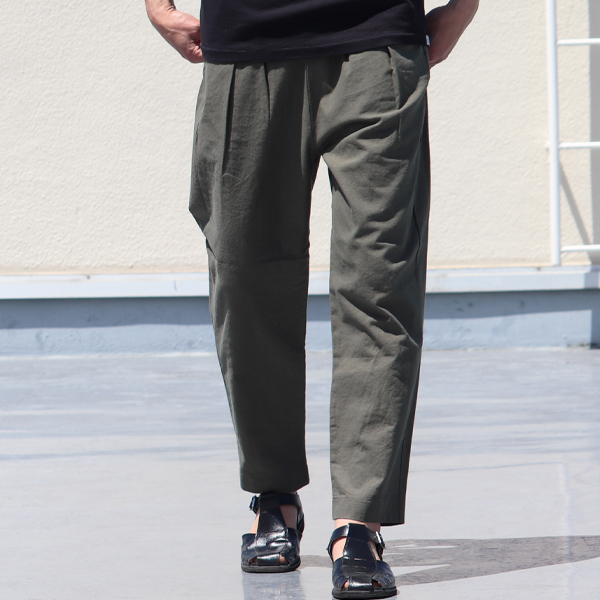 綿麻ビンテージソフトキャンバス ワイド イージータックアンクルパンツ【MADE IN JAPAN】『日本製』【送料無料】/ Upscape Audience [AUD3414]