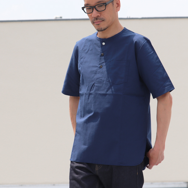 ラフになり過ぎない素材感Upscape Audience Cotton Henry Concho button 5/S Shirt_Tee