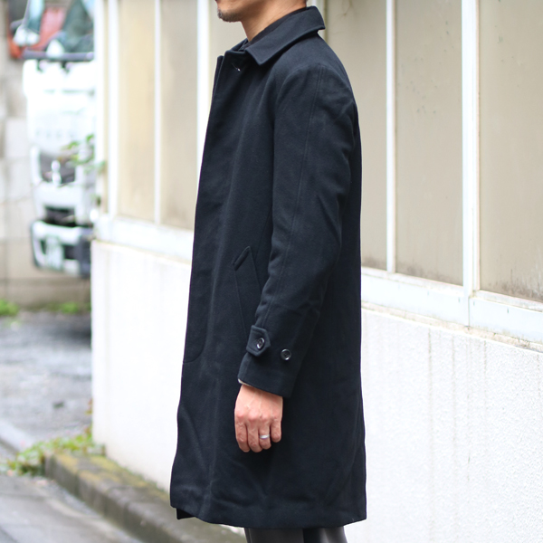 軽く柔らかく、暖かな610gメルトン素材を使用したステンカラーコート。