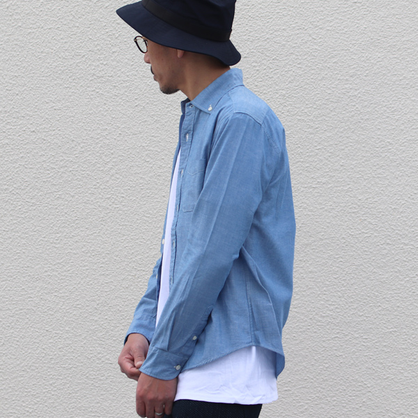 国内のメンズシャツ専門工場で縫製を行ったシャツだけあって、シンプルながらしっかりときまる絶妙なバランスです。