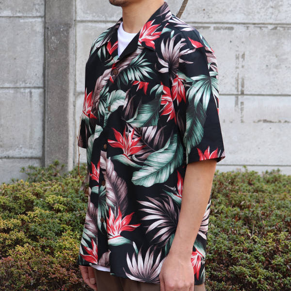 アロハシャツの黎明期を支え、第一人者として活躍した日本人デザイナーの図案を採用しております。訳あって、デザイナー名はシークレット扱いとなっております。申し訳ありません!