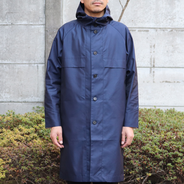 フードが付くことでカジュアルな印象が生まれますが、玉虫ギャバの素材感が相まって上品なコートに仕上がっております。