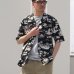 コットンレーヨン ヴィンテージHAWAII&LEAVES柄 オープンカラー ハーフスリーブシャツ【MADE IN JAPAN】『日本製』/ Upscape Audience [AUD6203-HAWAII-BLACK]