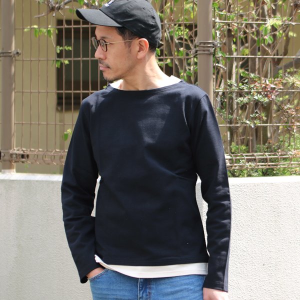 Basque 10オンス ( バスク天竺 ) ボートネックレイヤードカットソー【MADE IN JAPAN】『日本製』 / Upscape Audience [AUD1713-BLACK]