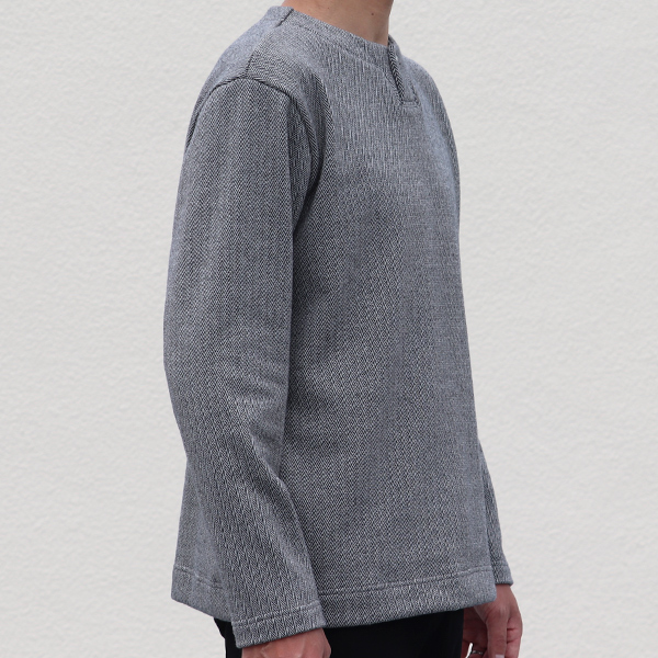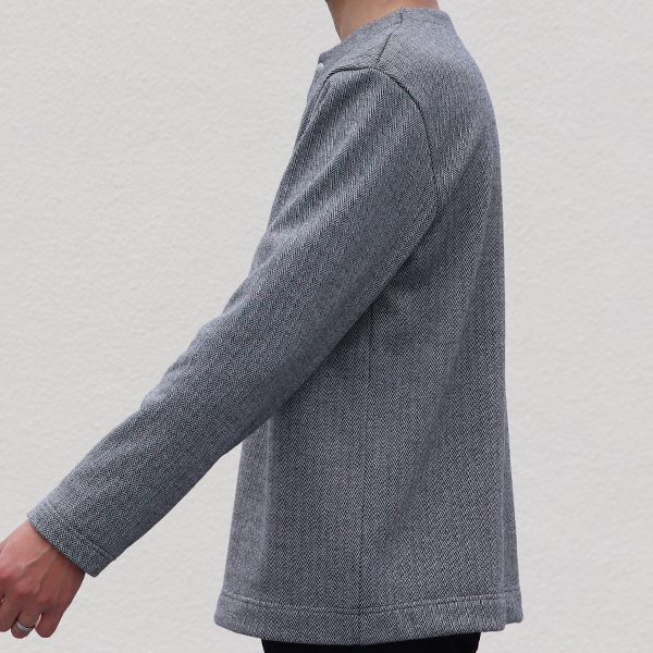 ゆとりを持たせたシルエットにて、1枚着からインナーまで幅広くご使用頂ける上、シャツとのレイヤードでも、もたつきにくくなっております。
