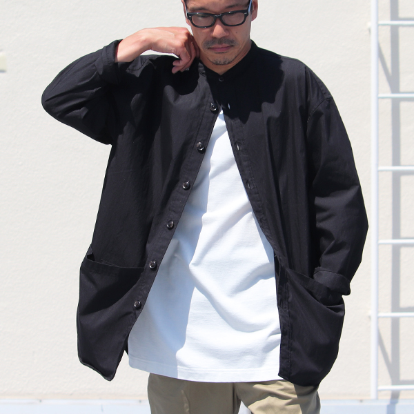 ベーシックなスタンドカラーと洗いざらした風合いが様々な着こなしに活躍する一枚となっております。