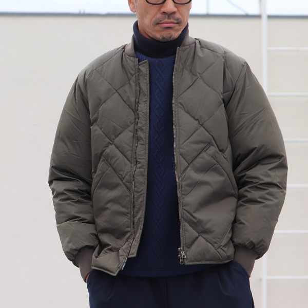 キルティングダウンに、80〜90年代のデッドストックのSchootのダウンを思わせる丸みを帯びたフォルムが特徴です。