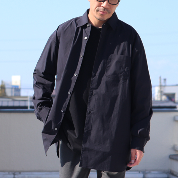70/30クロス ストレッチタイプライターレギュラーカラー L/S ボクシーシャツ【MADE IN JAPAN】『日本製』/ Upscape Audience [AUD6265]