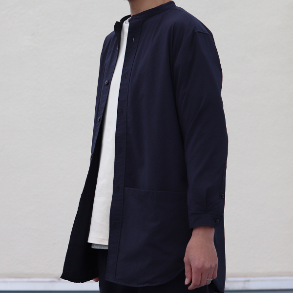 このシャツシリーズ、首元のバンドカラーが良さでもあり、ざっくりと1枚羽織るだけで抜け感のある雰囲気を出してくれます。