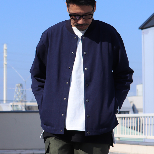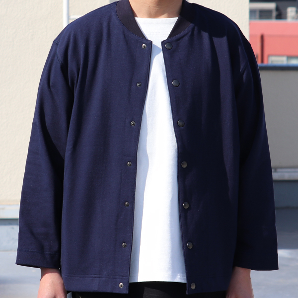 GILDAN(ギルダン)などの6オンスや、肉厚のCarhartt(カーハート)の6.7オンスよりも度詰めでしっかりとした10オンスのバスク天竺からスナップブルゾンの登場です。