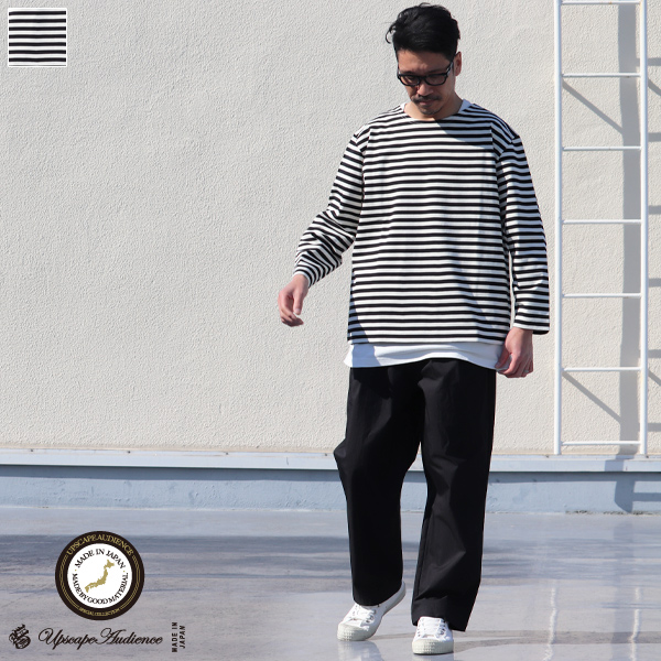 ボートネックをVORTEX天竺でもUpscape Audience VORTEX 8オンス(MVS天竺)ロシアンボーダー ボートネック ボクシー Tee