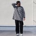 ディテール面はドロップショルダー、お尻まで隠れたボックスシルエット、袖口リブ、胸ポケットには分割したグラスポケットも施してあり、 そこは無地で好評を博したAUD6237を踏襲しております。