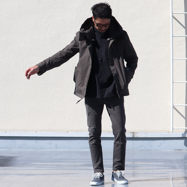 C/Nクロス特有のわずかな光沢とマットな質感がモダン・ミリタリーによく似合っています。
