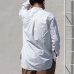 また、前身頃にタックが入ることにより、裾に向かって広がるAラインシルエットが上品さとぐるりと一周した時の全体の死角なしのシャツに仕上がっております。